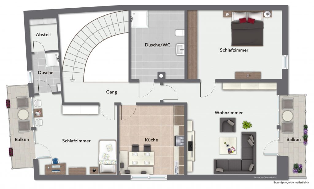 – 1-2 Schlafzimmer (je nach Personenzahl) mit Balkon – Voll eingerichtete Wohnküche – ein geräumiges Wohnzimmer – 2 Bäder (Dusche bzw. Bad mit WC) – Flachbild-Sat-TV – Flur – Gratis WLAN